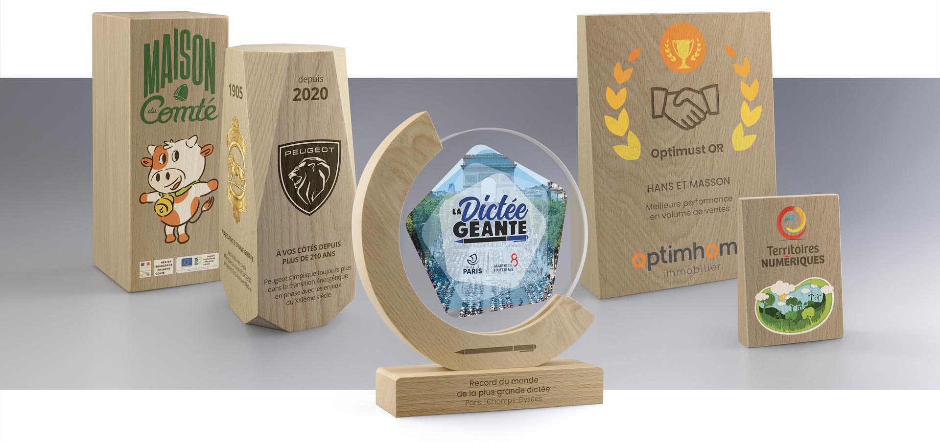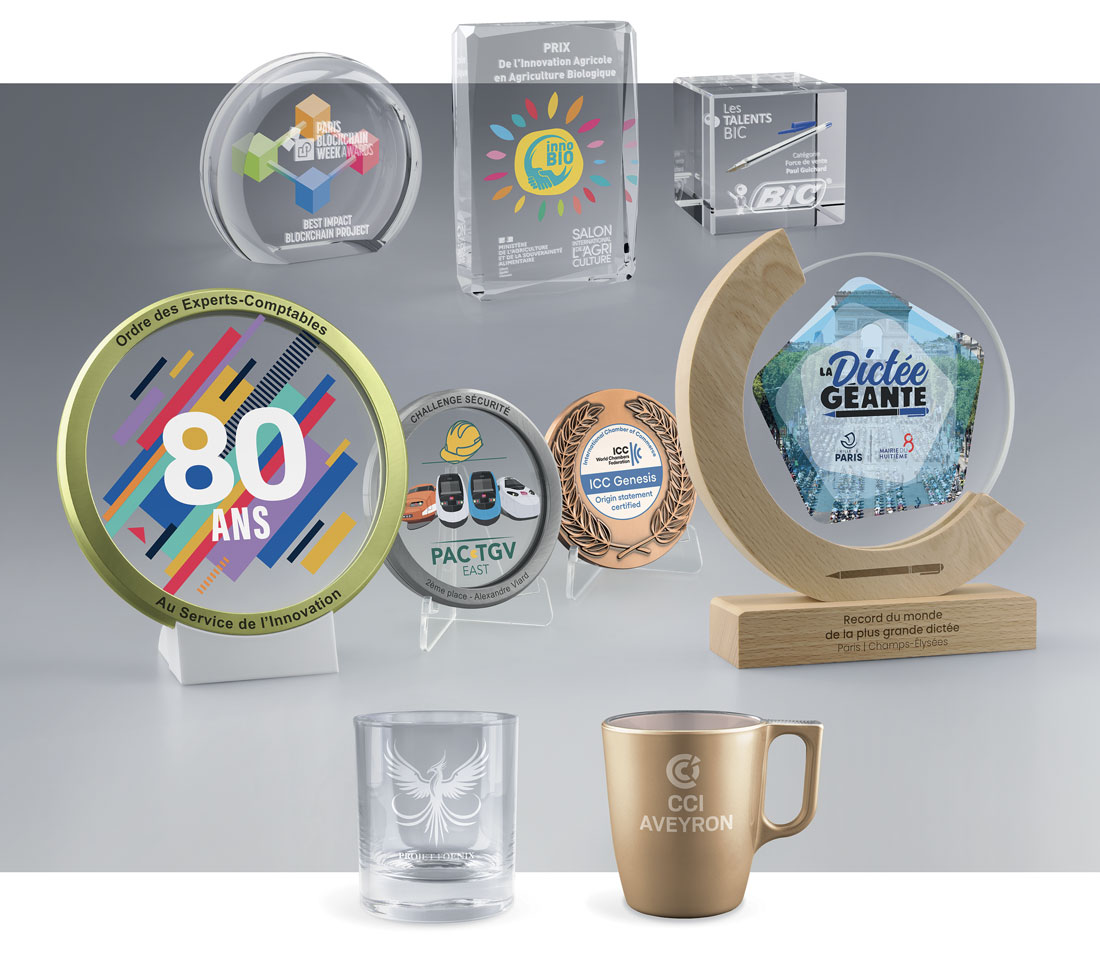 Découvrez nos Trophées Personnalisés, où chaque œuvre est un symbole de qualité et d’innovation. Grâce à des techniques avancées comme la gravure laser pour une précision inégalée et l’impression numérique couleur pour un impact visuel impressionnant, nous transformons chaque trophée en un objet unique et mémorable. Pour des cadeaux d’entreprise, des événements sportifs, ou des occasions spéciales, nos trophées personnalisés sont le choix idéal pour célébrer et immortaliser vos moments importants.